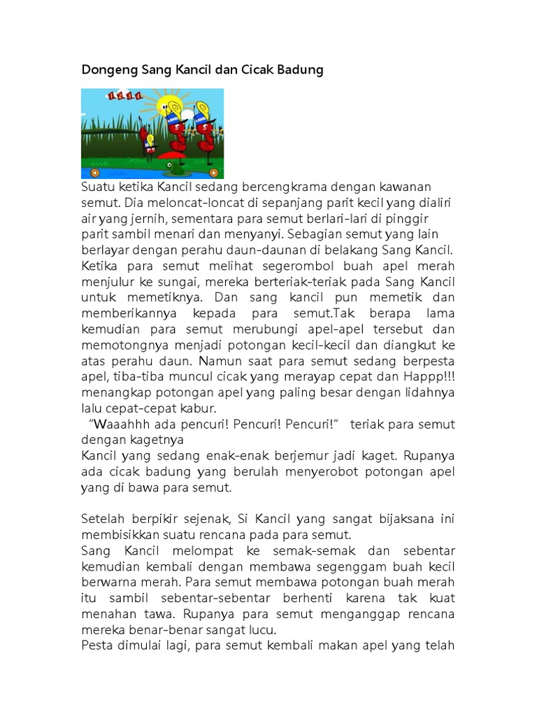 Beberapa siswa berbeda suku, bahasa, dan agama. Tulislah kembali dongeng sang kancil dan cicak badung dengan bahasamu sendiri! Dongeng sang kancil dan cicak badung beserta ulasannya. Dongeng sang kancil dan cicak badung beserta ulasannya. Suatu ketika kancil sedang bercengkrama dengan kawanan semut.