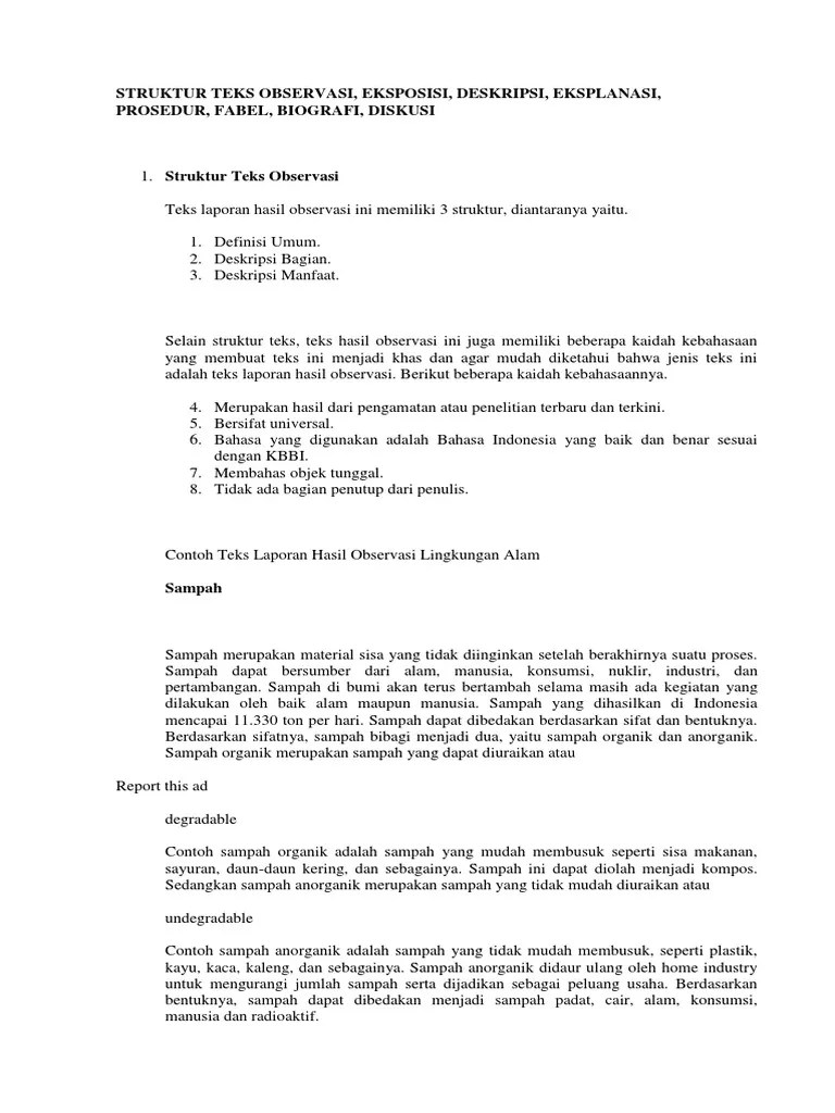 Dibawah ini merupakan 2 contoh teks eksposisi lingkungan tentang banjir dan sampah beserta strukturnya sebagai bahan mengerjakan tugas bahasa. Sudah tidak asing lagi, ketika di sekitar kita membuang sampah sembarangan. Jangan lupa untuk menyisipkan fakta di setiap karangan tulisnya ya. Jika berada pada lingkungan terbuka, . Bahaya sampah plastik untuk lingkungan sekitar. Sampah organik adalah sampah yang cepat . Selanjutnya, industri pengolah sampah dapat memanfaatkan sampah organik . Dalam contoh di atas, argumentasi berada di paragraf ketiga. Berdasarkan jenisnya, limbah tersebut dibagi menjadi limbah organik, limbah anorganik dan limbah kimia. Pentingnya buang sampah pada tempatnya. Itulah penjelasan singkat mengenai pengertian teks eksposisi. Bahkan dari kalangan muda sampai tua. Padahal membuang sampah pada tempatnya merupakan bentuk paling sederhana dari budaya menjaga kebersihan.